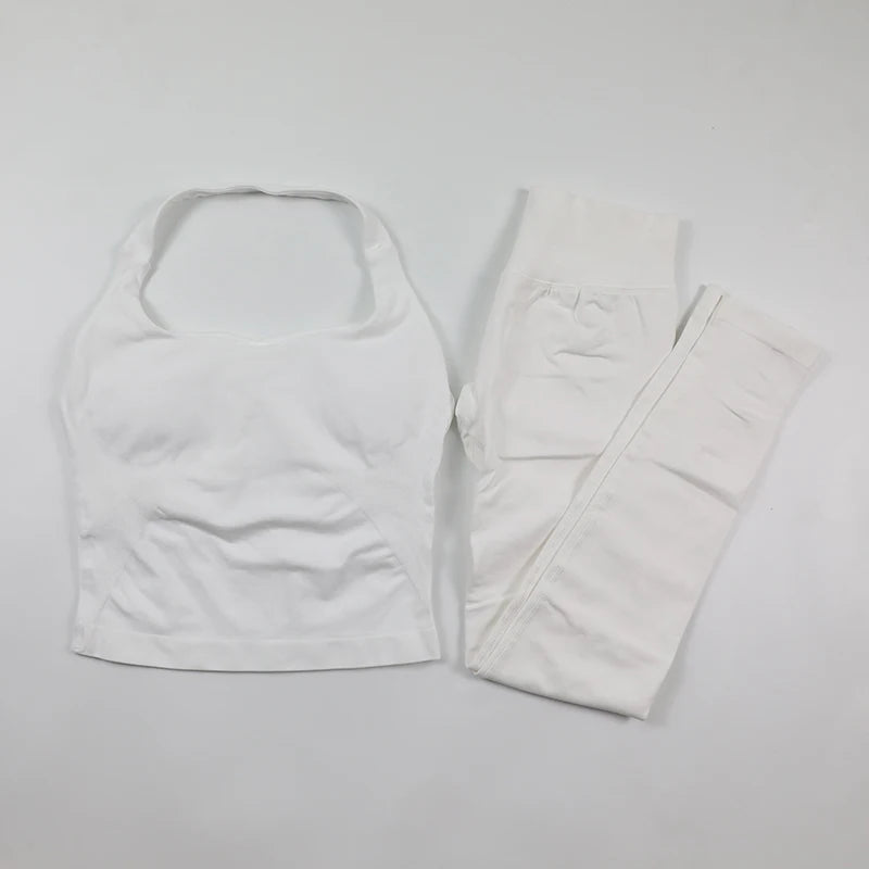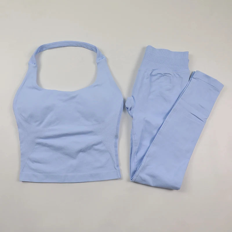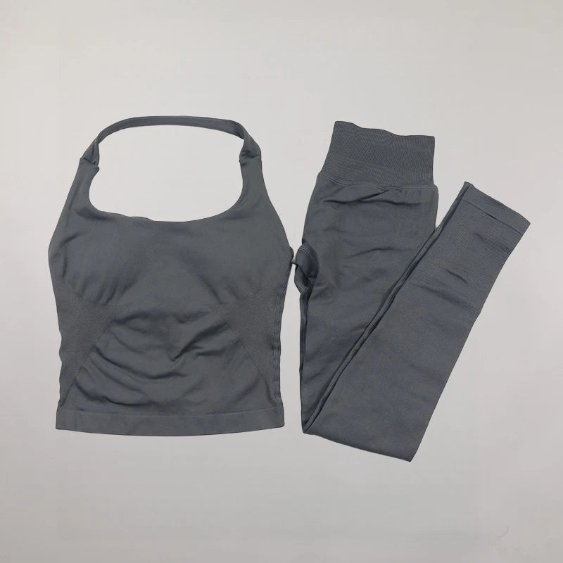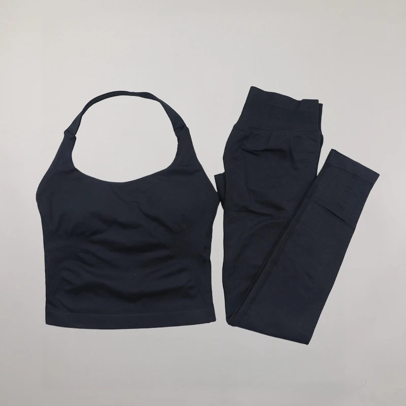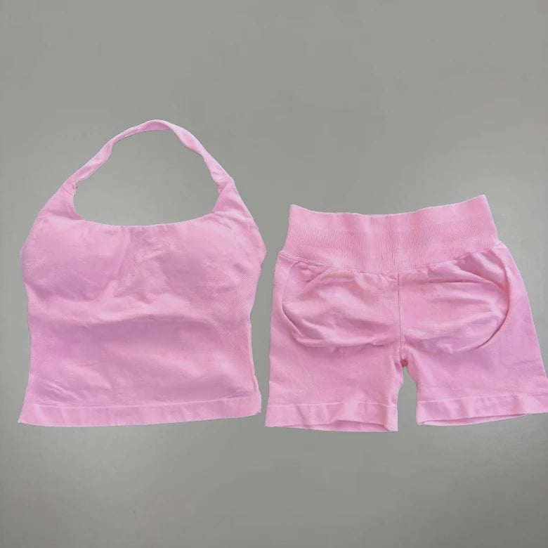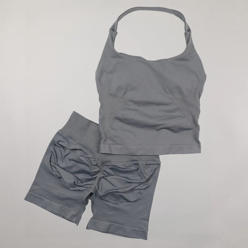 Yoga Halter Top Impact leggins Set Women's Beautiful Back Sports Bra Hip-Lifting High-Stretch Shorts Set Indoor Outdoor Gym Set
