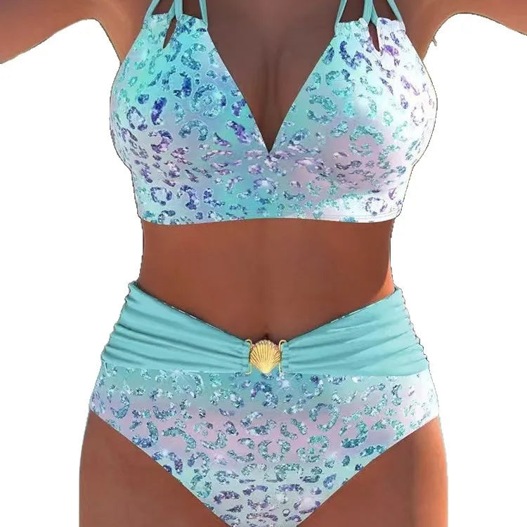 2025 New Gradient Leopard Print Women's Sexy Beach Bikini Strap Crossbody Swimsuit High Waist Quick Dry Eco Friendly Tight Fi...
