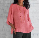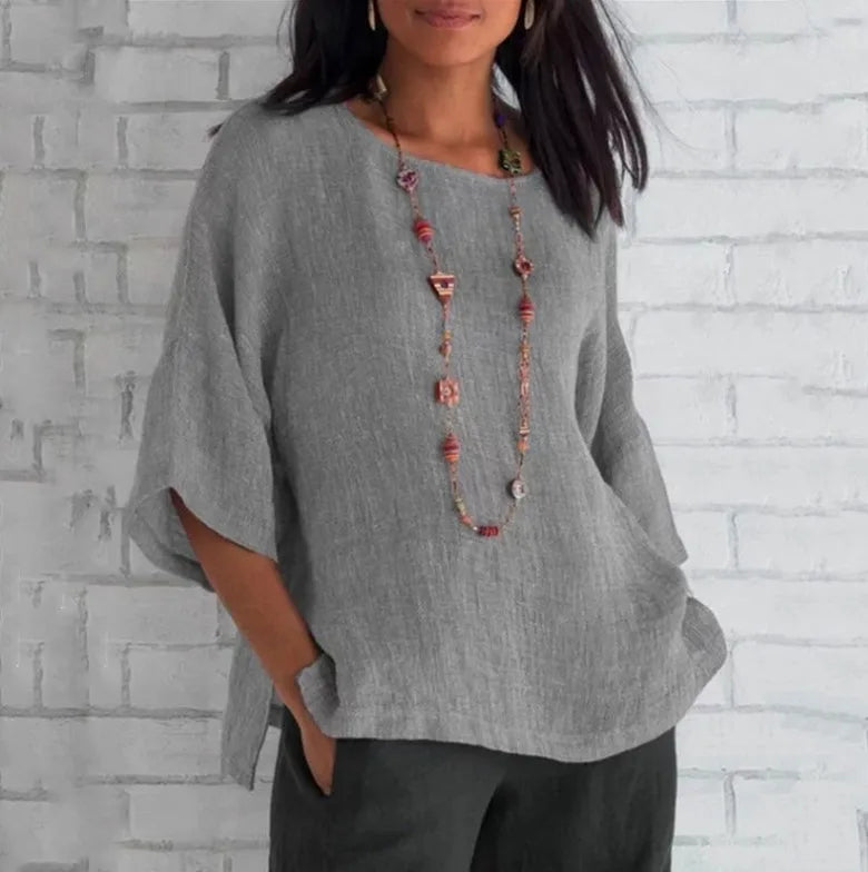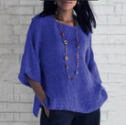 Plus Size Cotton Blouse Shirts Summer O-Neck Three Quarter Loose Casual Blouse Tops Summer Cothes For Women Streetwear