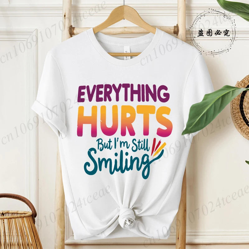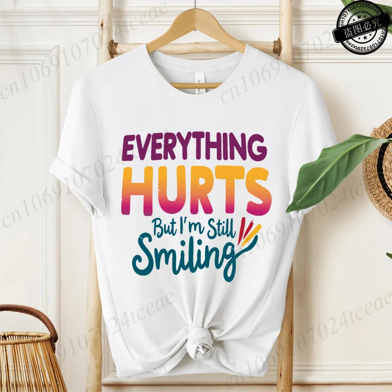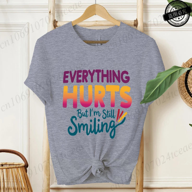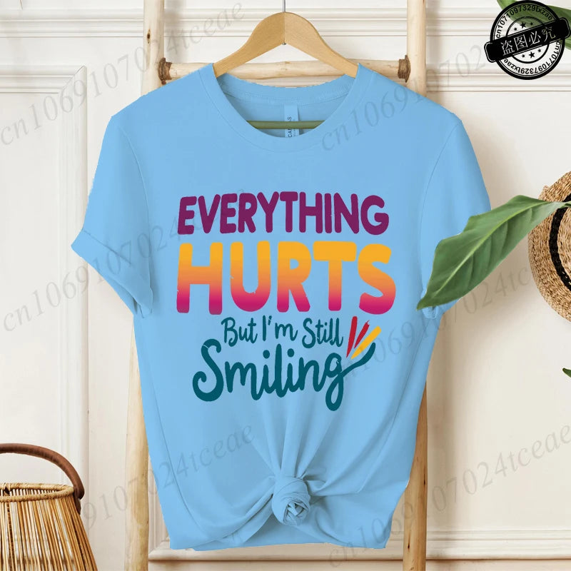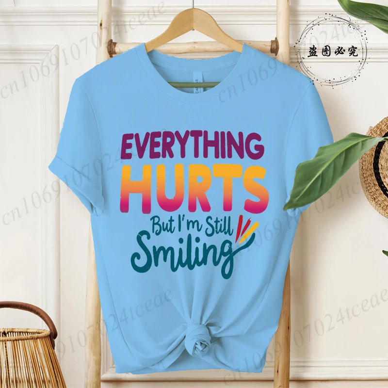 Everything Hurts But I'm Still Smiling Design Shirt,Funny Sarcastic Quote Tops, Short Sleeve T-Shirts,Summer Fashion Tee Shirts