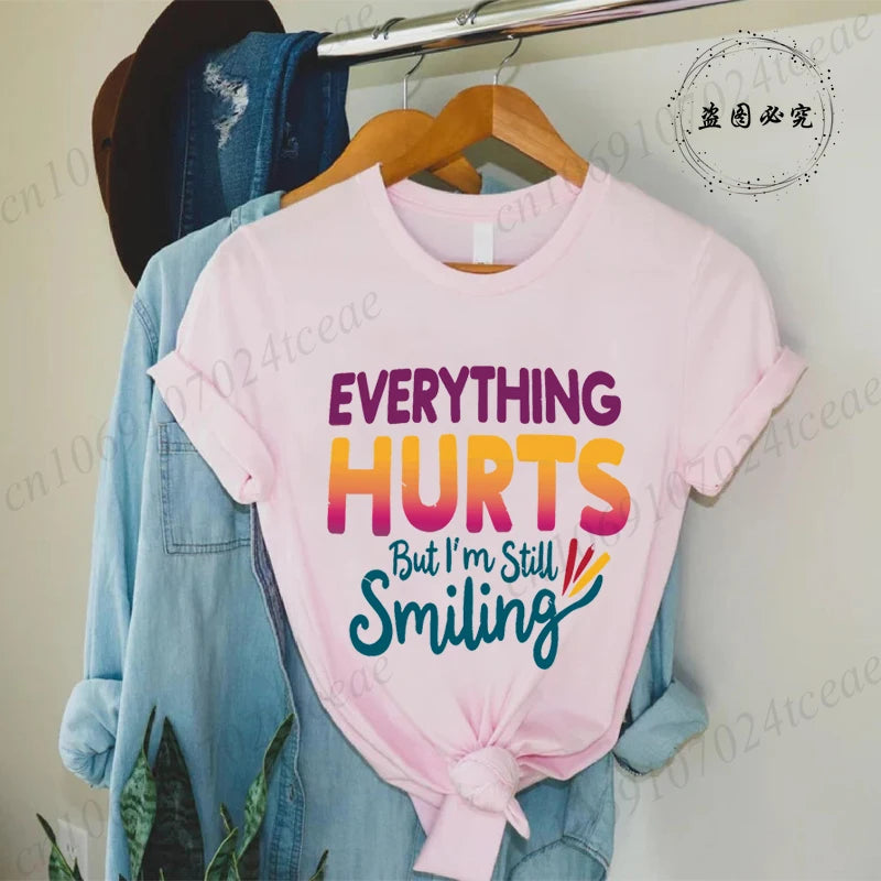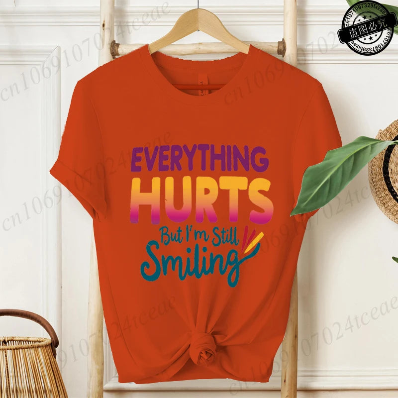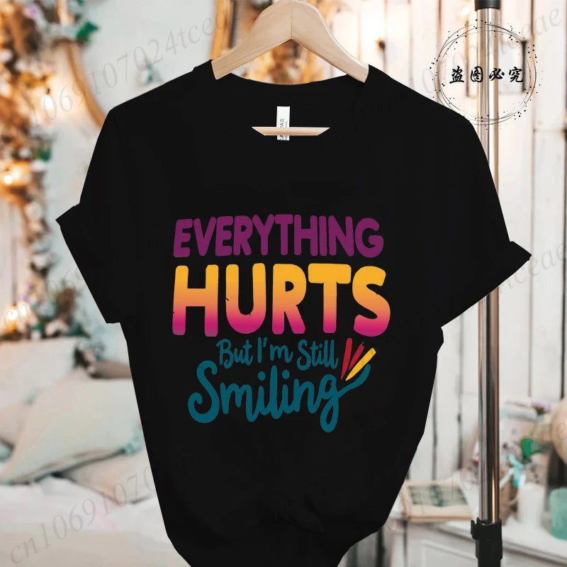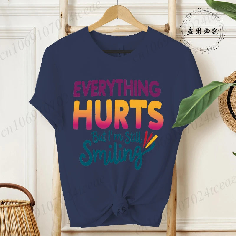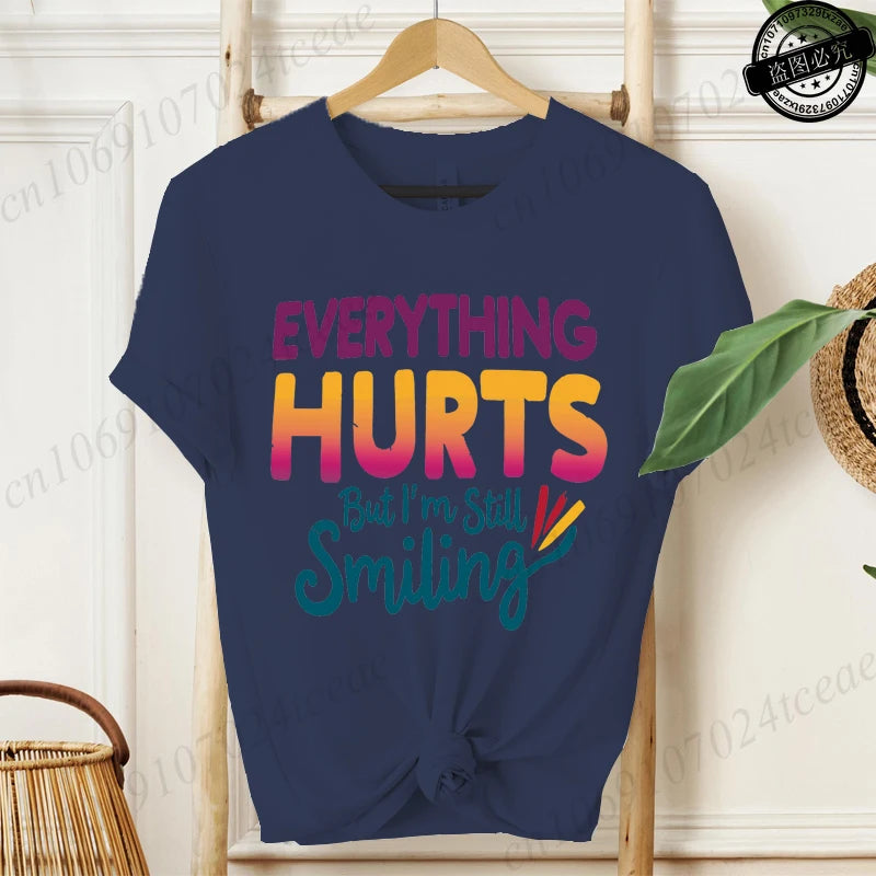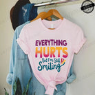 Everything Hurts But I'm Still Smiling Design Shirt,Funny Sarcastic Quote Tops, Short Sleeve T-Shirts,Summer Fashion Tee Shirts