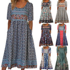 2025 summer new women's Bohemia loose fashion print round neck short sleeve long dress
