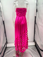 European and American Fashion Strapless, High-waisted Evening Gown, Women Design Sense Stitching Wafer Satin Sexy Dress Vestidos