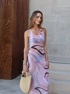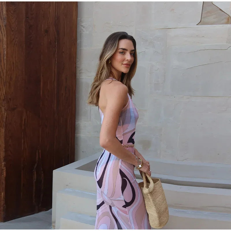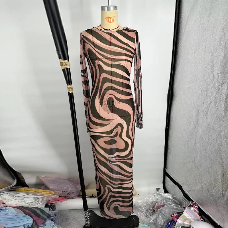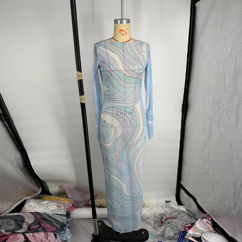 Sexy Women's Sheer Mesh Bodycon Maxi Dress Chic Print Sleeveless Slim Fit Beach Vacation Long Dresses Casual Daily Female Outfit