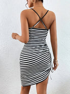 Sleeveless Strappy Mini Dress Summer Beach Style Slimming And Sexy Striped Pattern Women's V-neck A-Line Halter Knitted Dress