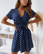 Summer Women's Polka Dot Printed Short Sleeved Casual Dress Fashionable V-neck Belt Commuting Dress Holiday Party Women's Dress