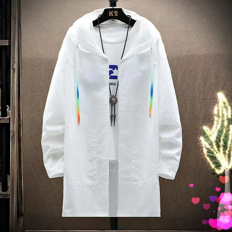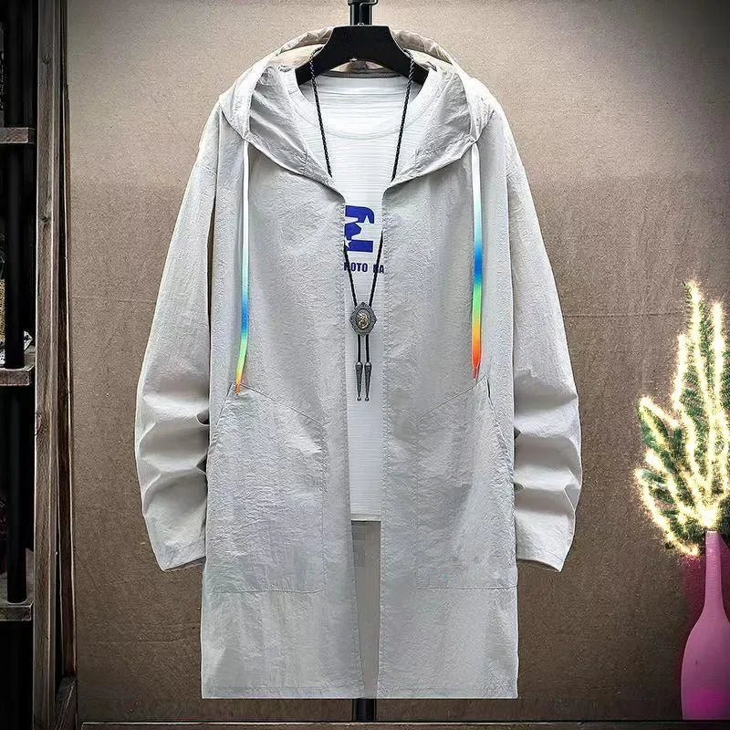 Summer Zipper Sun Protection Ice Silk Long Jacket Lightweight Trendy Youthful Coat Windbreaker Elegant Oversize Style
