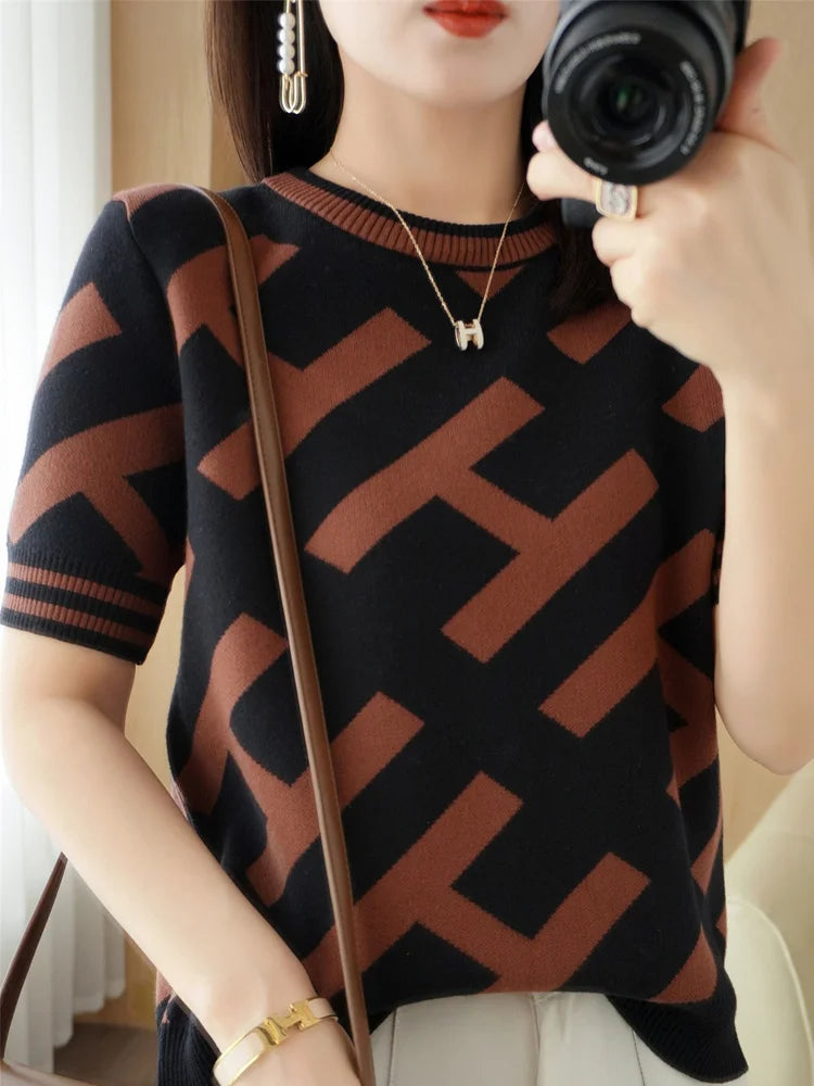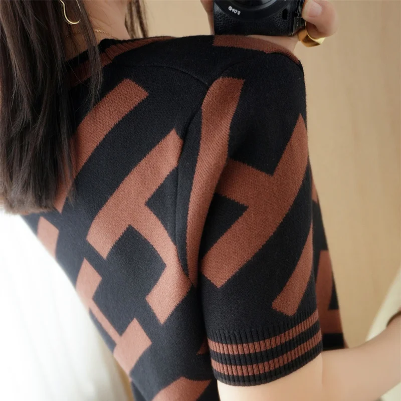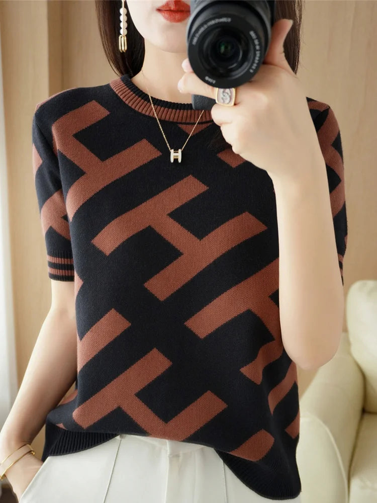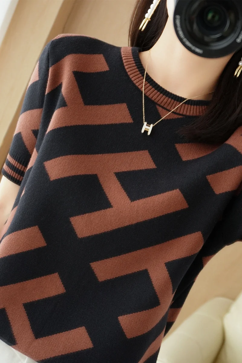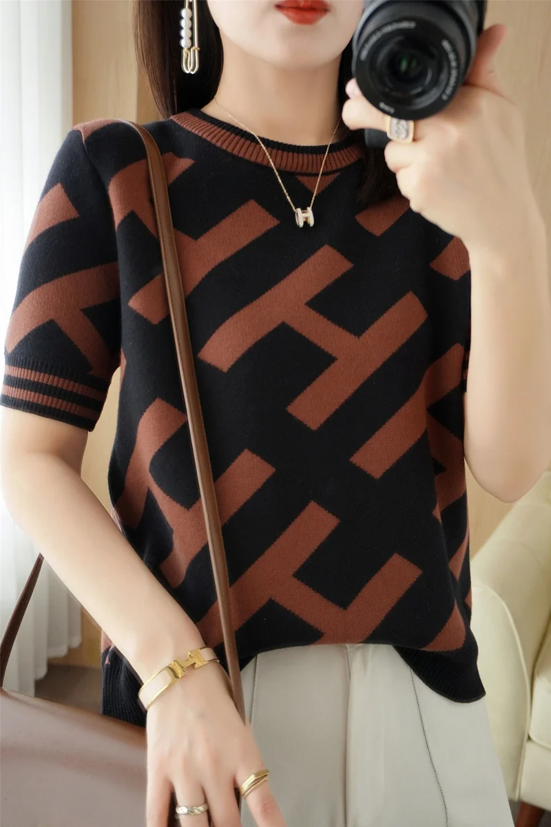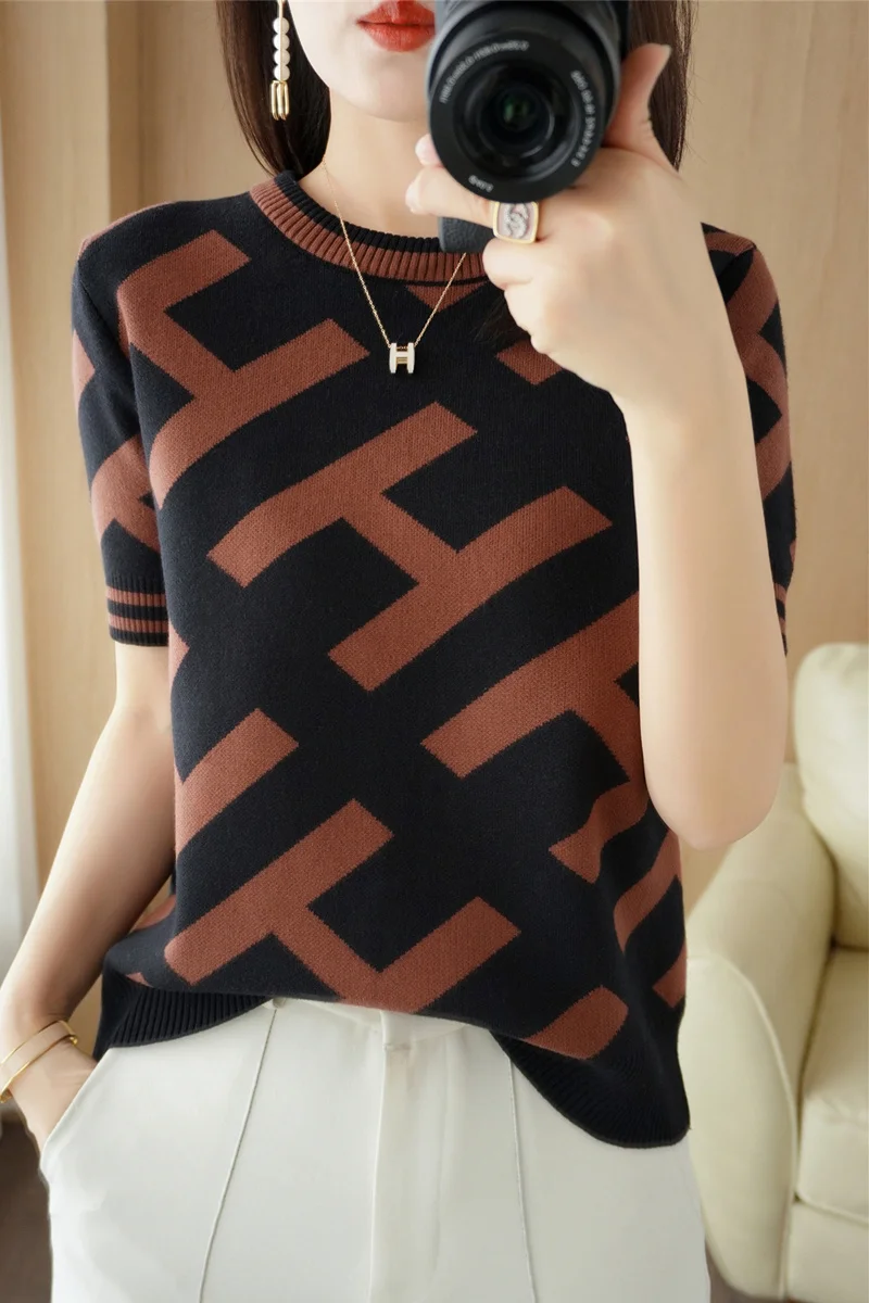 100% Cotton Short-Sleeved T-Shirt Women's Summer Knitwear Fashion New Slim-Fit All-Match Sweater Top Women's Tide SMY D33