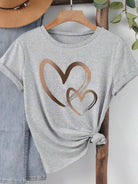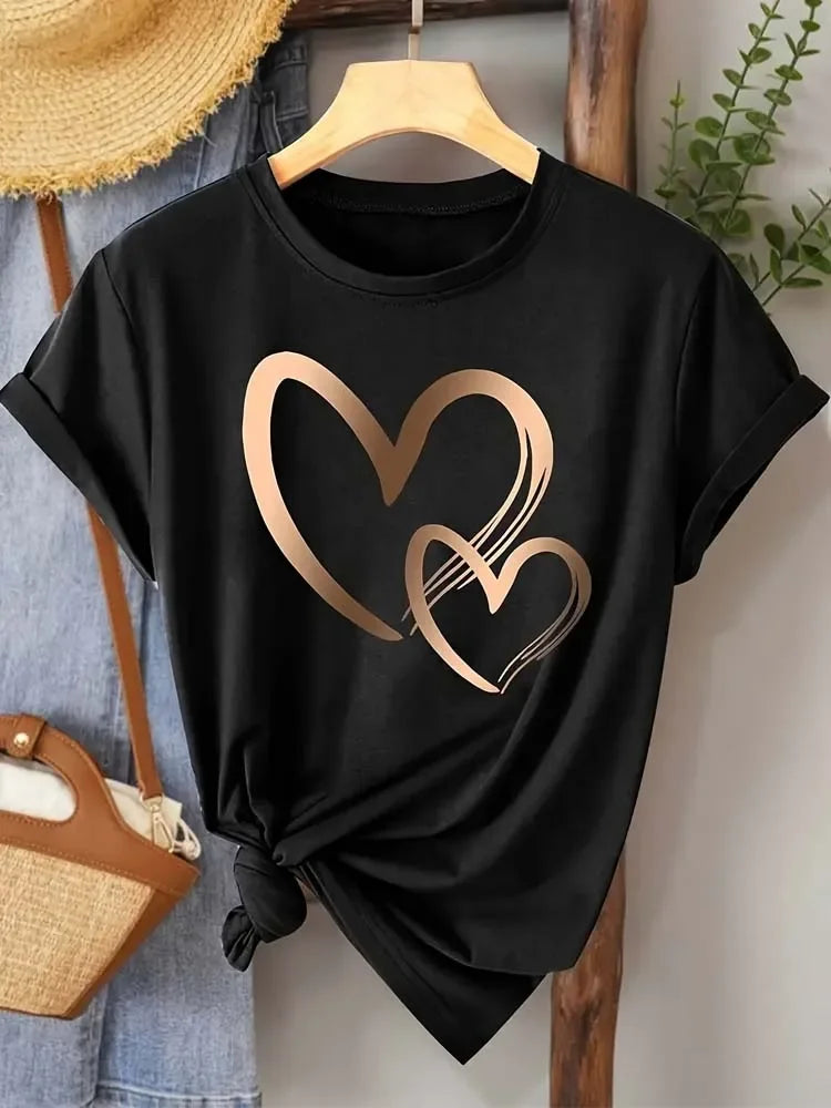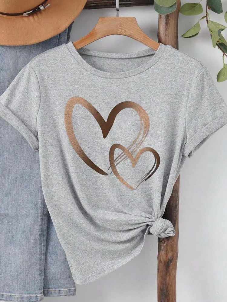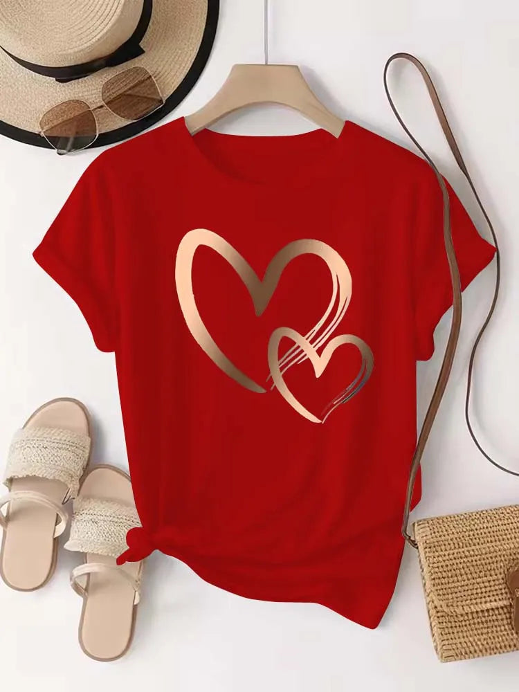 Summer New Fashion Women's Heart Printed T-shirt Trendy Casual Round Neck Top Short Sleeves Women T-shirt Women Clothing