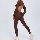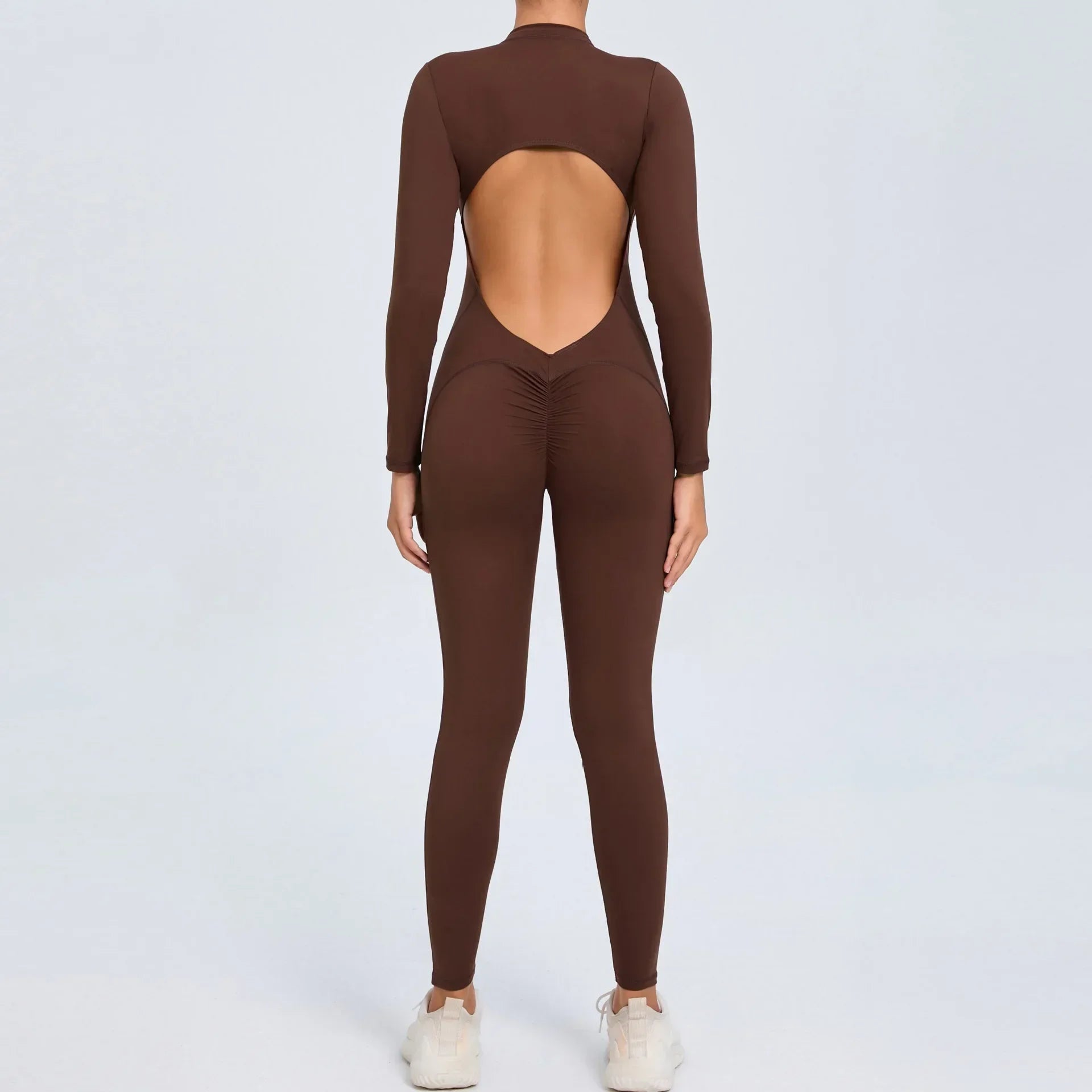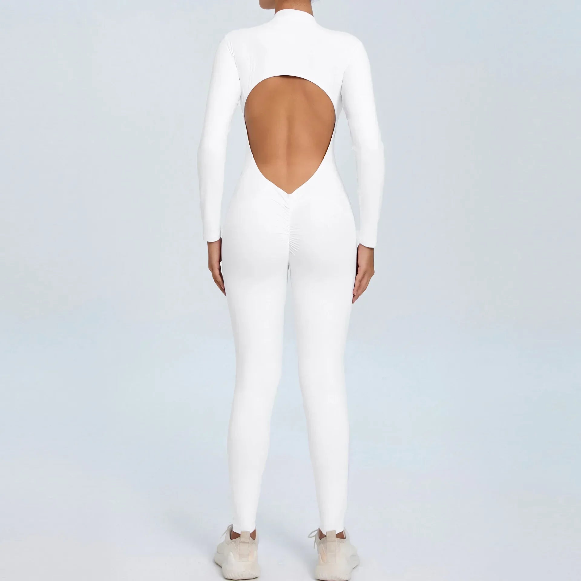 Hollow Backless Sport Jumpsuit Women Sexy Monkeys Tracksuit Long Sleeve Zipper Fitness Overalls One Piece Gym Set Yoga Outfit