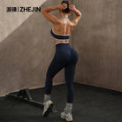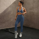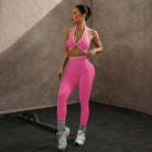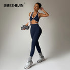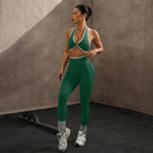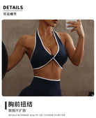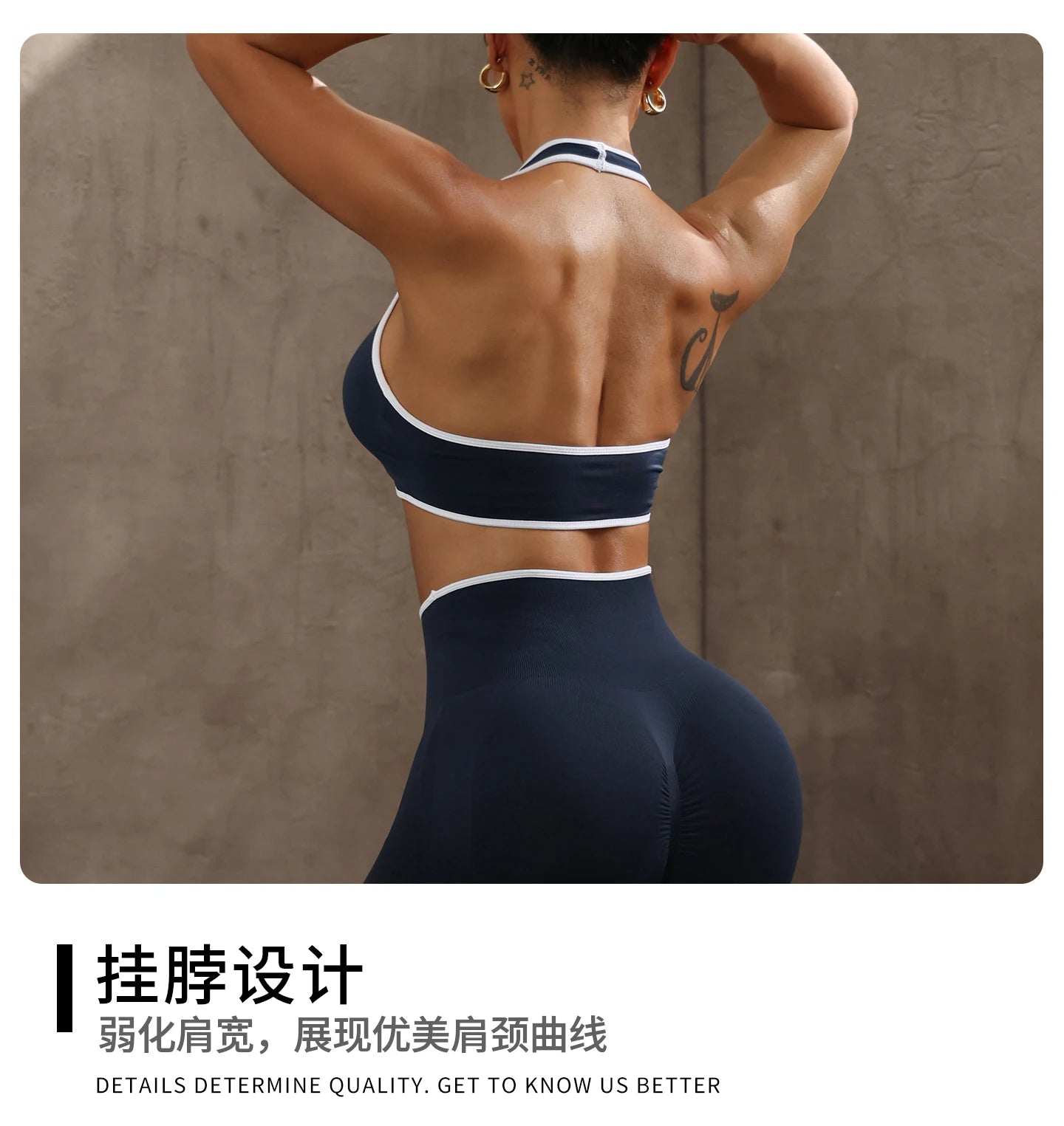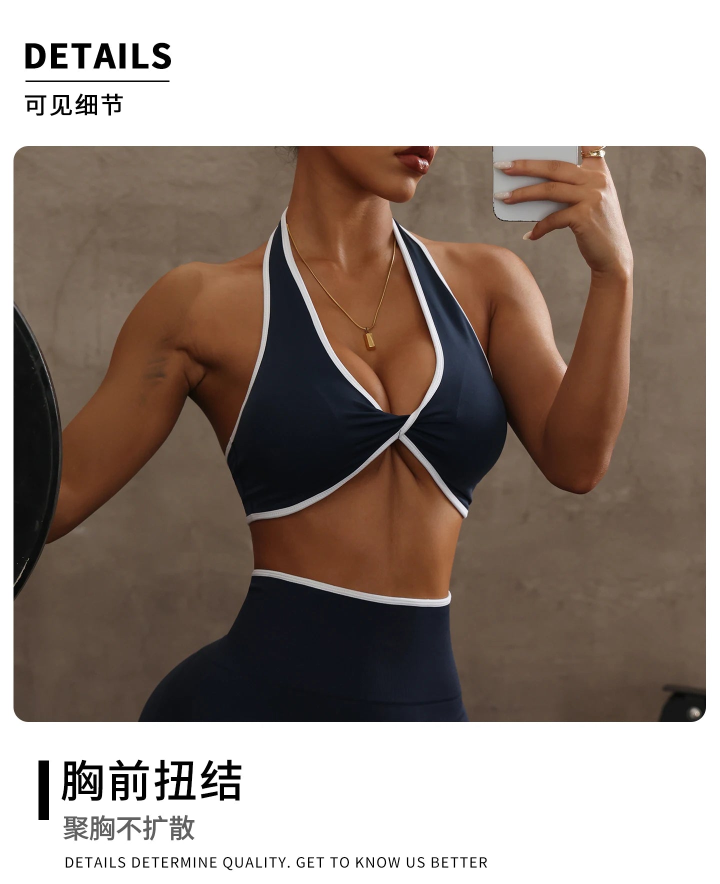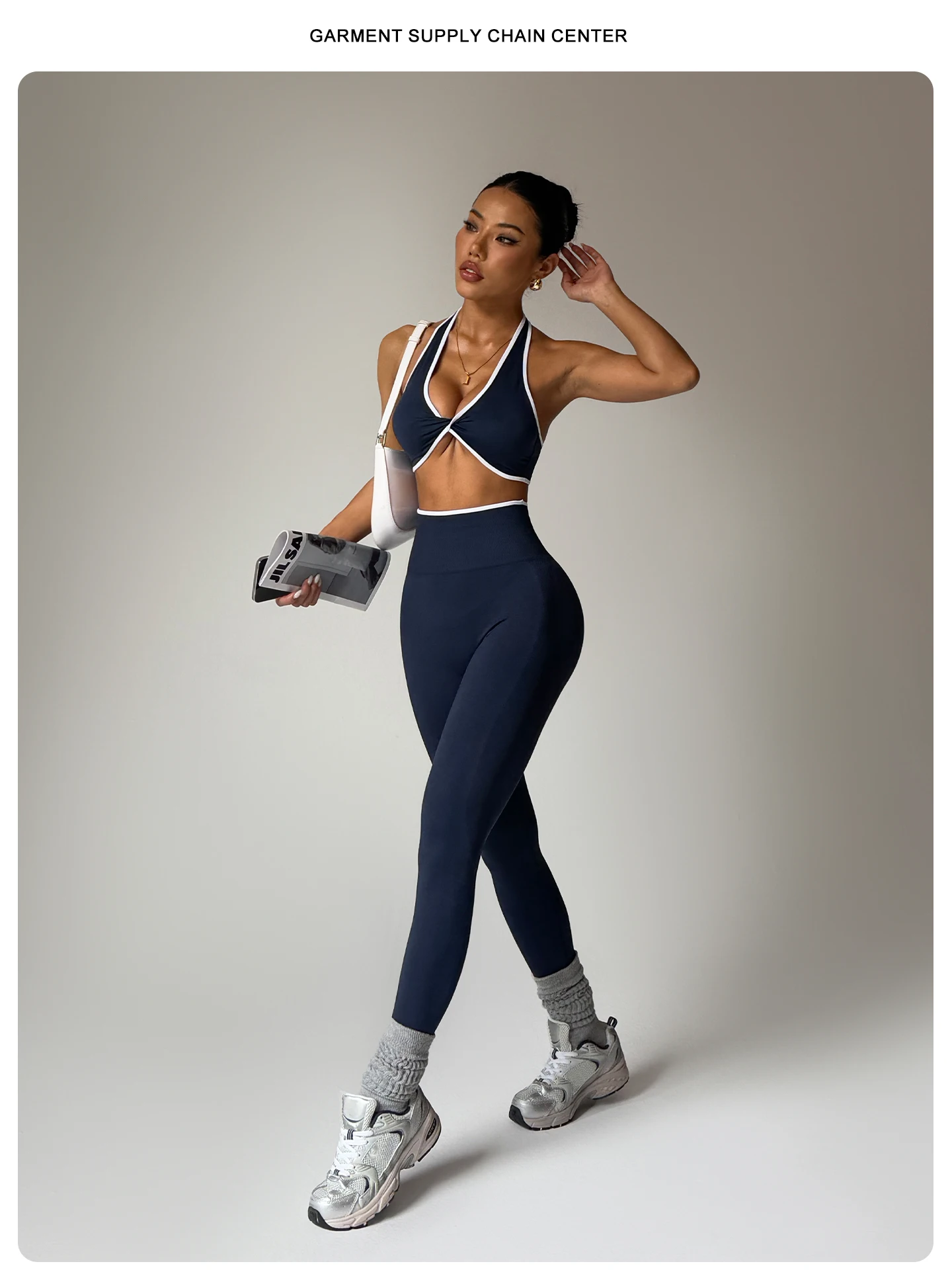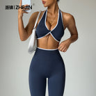 ZHEJIN 2 Piece Yoga Set Women Contrast Trim Halter Sports Bra High Waist Seamless Leggings Gym Workout Set Fitness Activewear Su