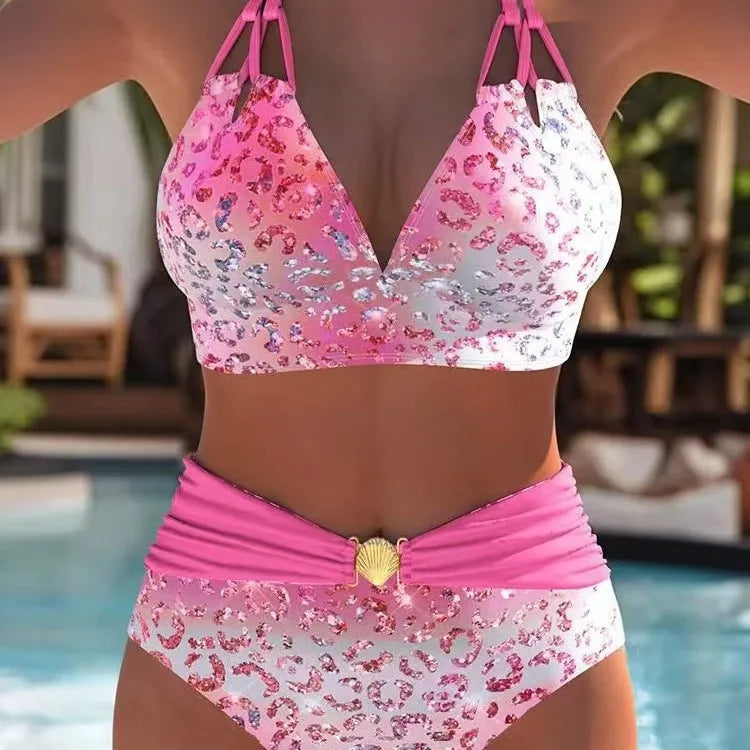 2025 New Gradient Leopard Print Women's Sexy Beach Bikini Strap Crossbody Swimsuit High Waist Quick Dry Eco Friendly Tight Fi...