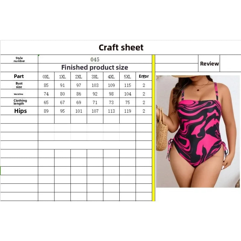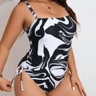 2025 Plus Size Women's Striped Print Drawstring One-Piece Swimsuit