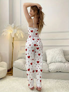 Autumn Winter Pajamas for Women Sleepwear Heart Print Sleeveless Cami Tops with Long Trouser 2 Pieces Set Loungewear