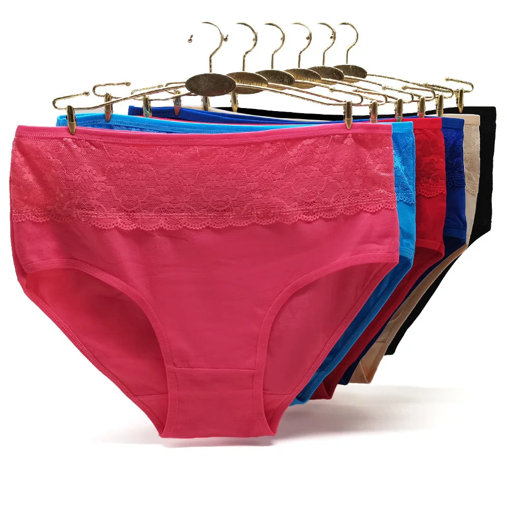 Cotton panties 2XL 3XL 4XL plus size briefs women Underwear high waist lingerie female intimate Transparent lace 3 pieces/lot