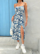 Fall 2025 Long Dress Strapless Wrap Chest High Slit Daisy Leopard Print Wrap around Skirt Maxi Dress