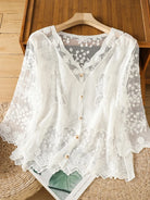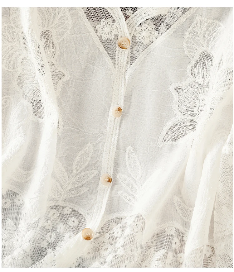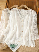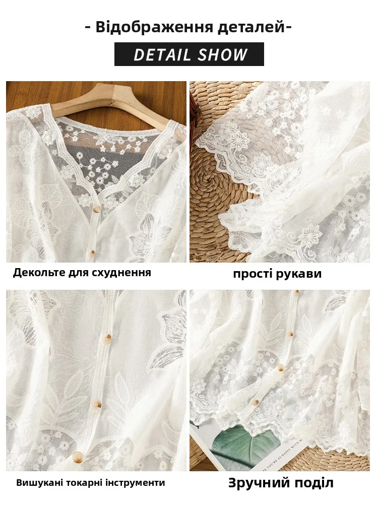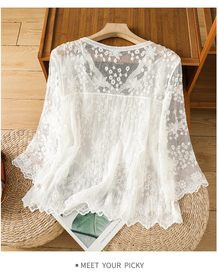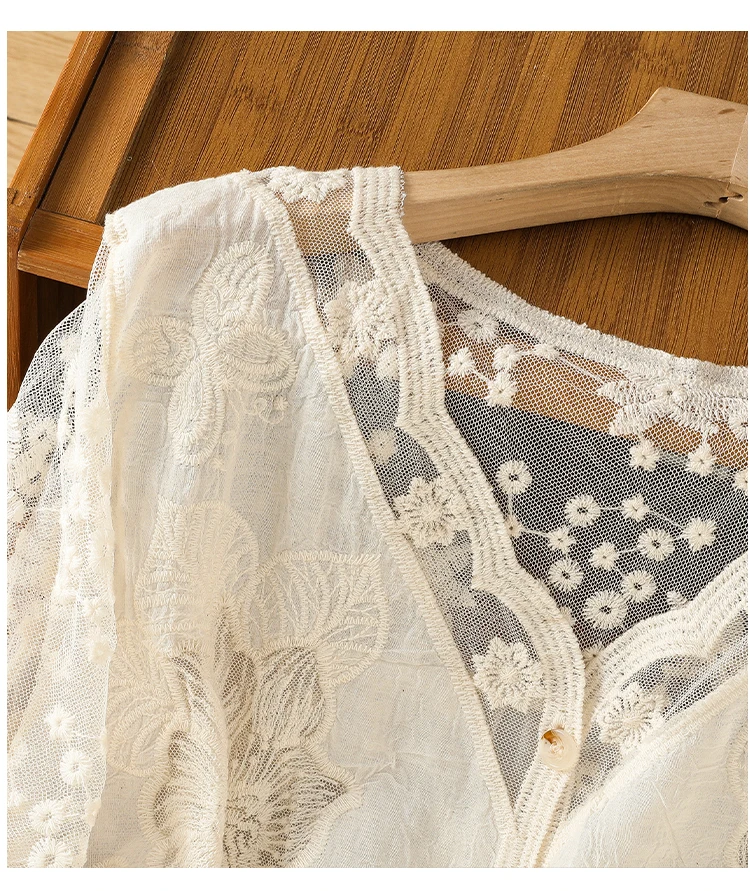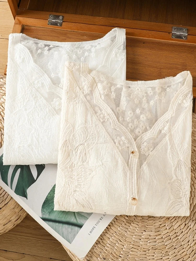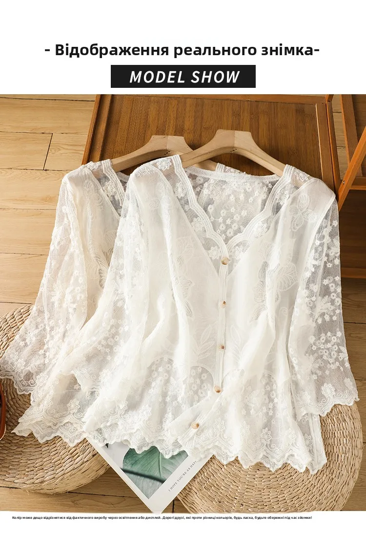 Lace Hollow out V-Ne Sun Protection irt Women's Summer Design Thin Cover up Fairy T Aosphere Ele Top