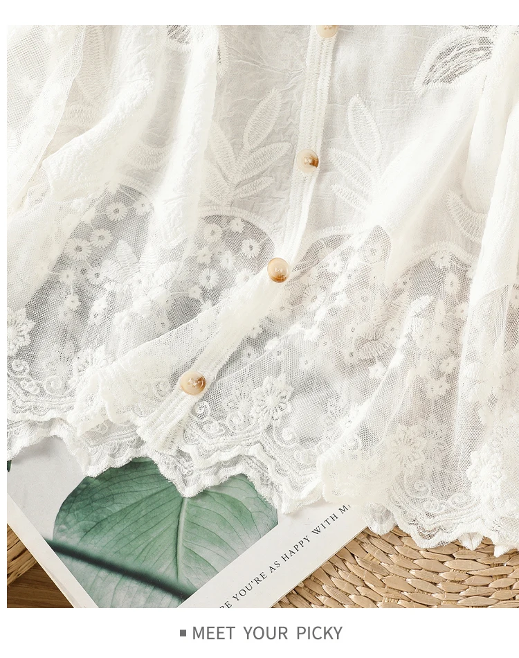 This shirt features a beautiful French lace design, adding a touch of elegance and sophistication to your summer wardrobe.