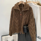 Retro Solid Double Zipper Turn-down Collar Sweater Women Autumn Winter New Lazy Style Loose Knitted Cardigan Thicken Loose Tops