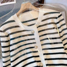 Stripe Knitted Cardigan Women Spring Autumn O-neck Single Breasted Long Sleeve Crop Tops Fashion Casual Chic Female Sweaters