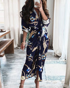Summer Bandage Shirt Women Fashion Button Ruched Dress Casual Short Sleeve Printed Dress Female Elegant Party Dress Robe