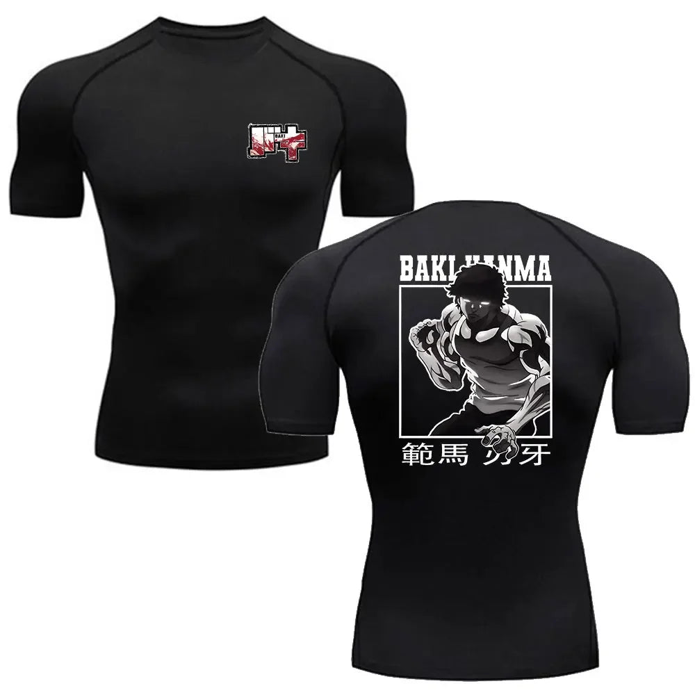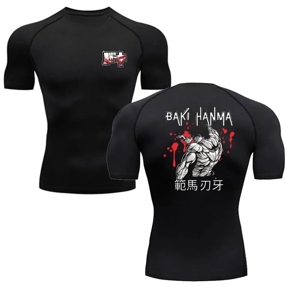 Trainings- und Fitness-T-Shirt Anime Baki Hanma Herren Laufshirt Kompressionsshirt Kurzarm Jogging-Sportbekleidung
