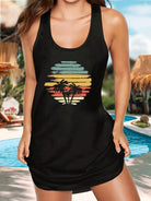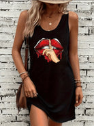 Women's Black Sleep Tank Dress Red Lips Women's Black Tank Top Dress Summer Sleeveless Loose and Comfortable Soft Vacation Punk