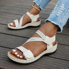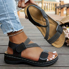 Women's simple solid color wedge sandals, casual open toed retro thick soled sandals, comfortable thick heeled beach sandals