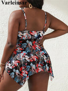 0XL - 4XL Printed Tankini Plus Size Large Size Swimwear Women Swimsuit Female Two-pieces Bikini set Bather Bathing Suit V6766