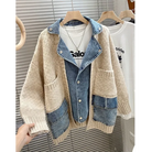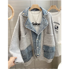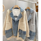 2024 Autumn Winter Retro Personality Stitching Denim Jacket Lazy Wind Knitted Sweater Cardigan Fashion Tide Comfortable Jacket