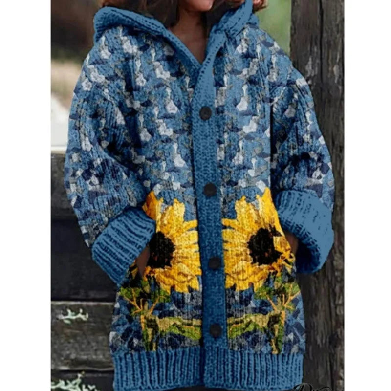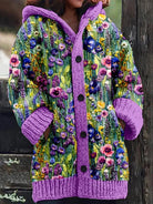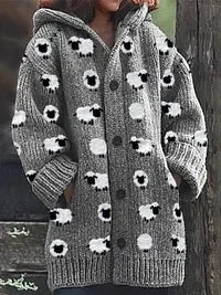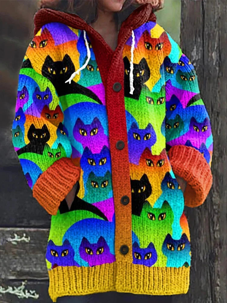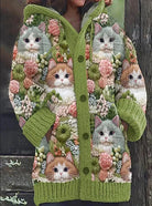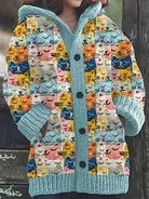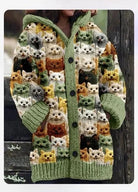 2024 Knitted Sweater Cardigan Cat Print O-neck Long Sleeve Jumpers Warm Fashion Women Casual Cardigan Autumn Winter Sweater