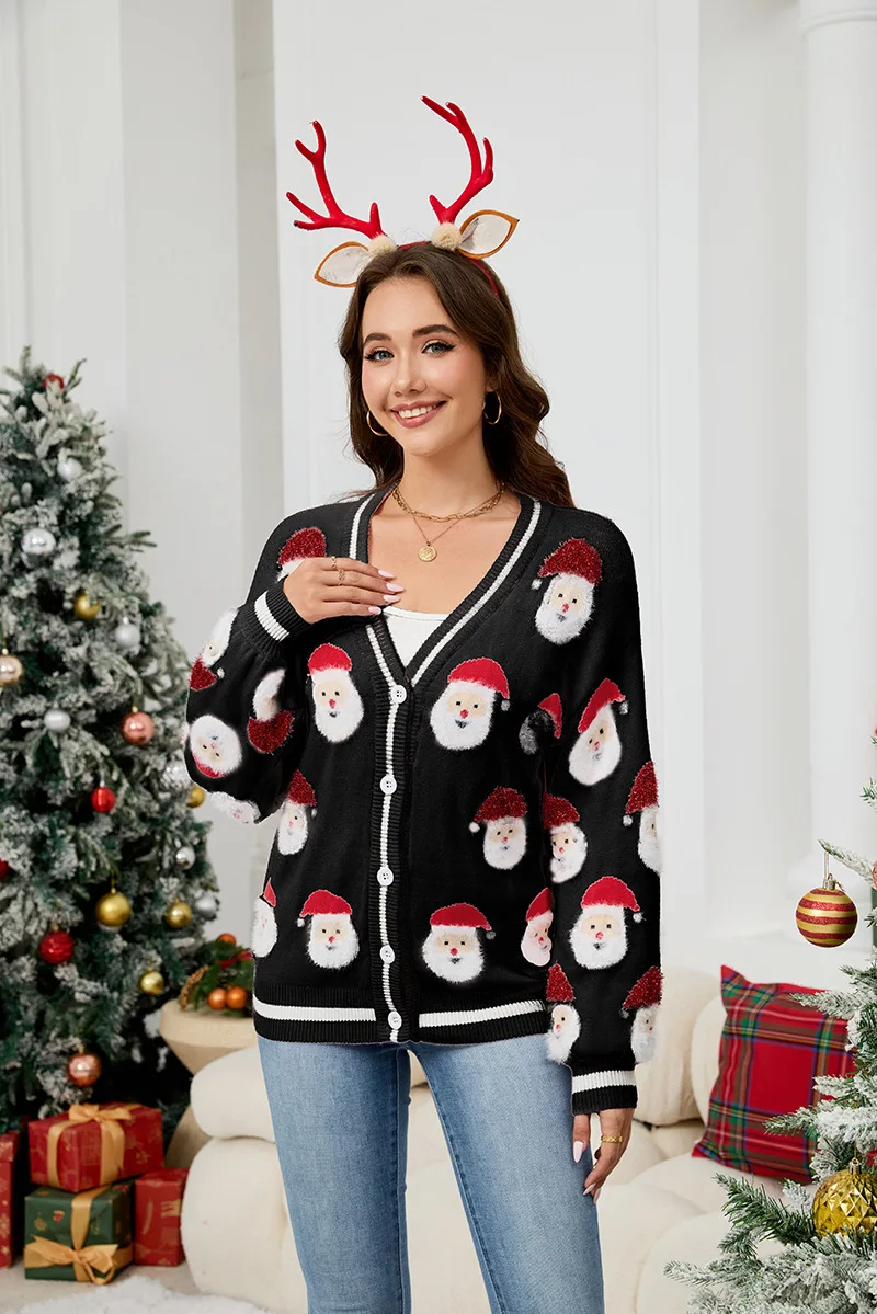 2025 Women's Casual Santa Claus Knitted Sweater, High-quality cardigan for autumn and winter fashion, new style, European size