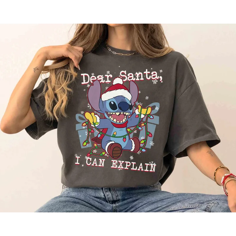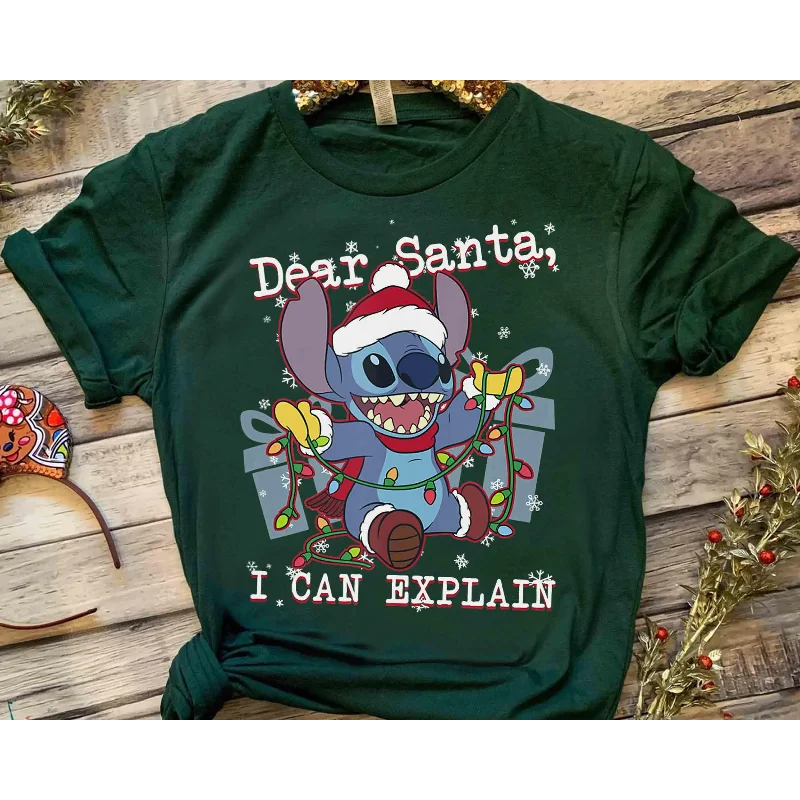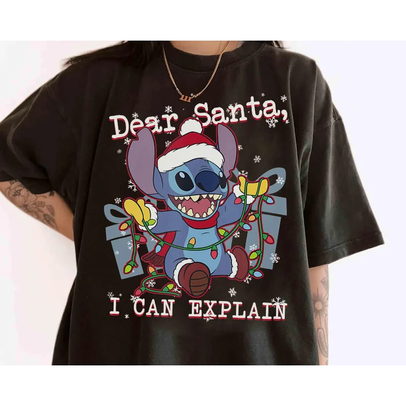 Adorable Lilo & Stitch Christmas Dear Santa Claus, I Can Explain T-shirt Unisex cotton all-season bottoming shirt
