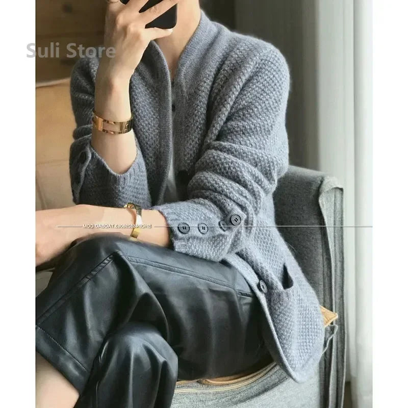 Autumn Winter New Thickened Cardigan Women Stand Neck Sweater Sweater Loose Knit Base Sweater Jacket