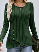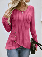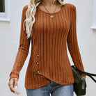 Casual Round Neck Long Sleeved Button Knit Sweater Women Autumn Solid Color Pullover T-Shirt