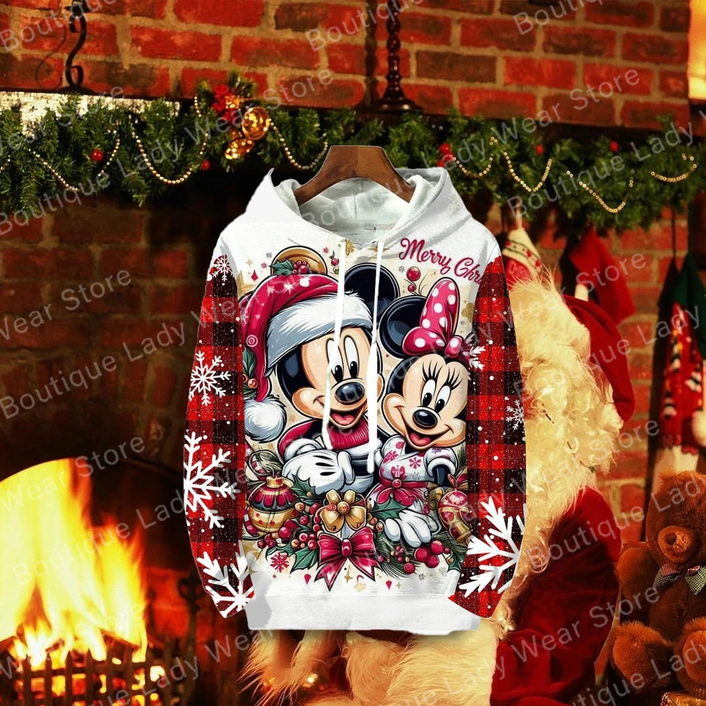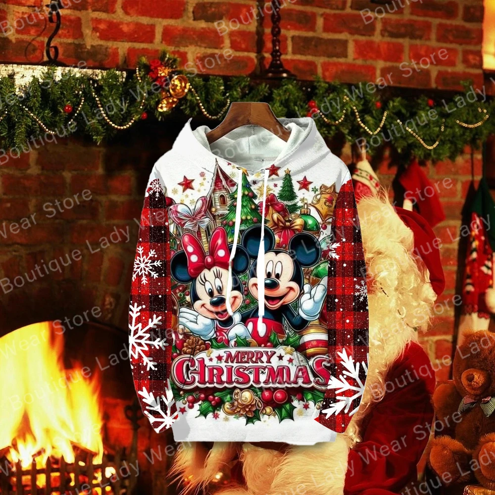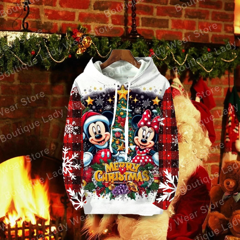 Christmas Mickey Minnie Women's Cartoon Hoodie With Loose Oversize Fall/Winter Top For Women Couples Kawaii Hoodie Clothing