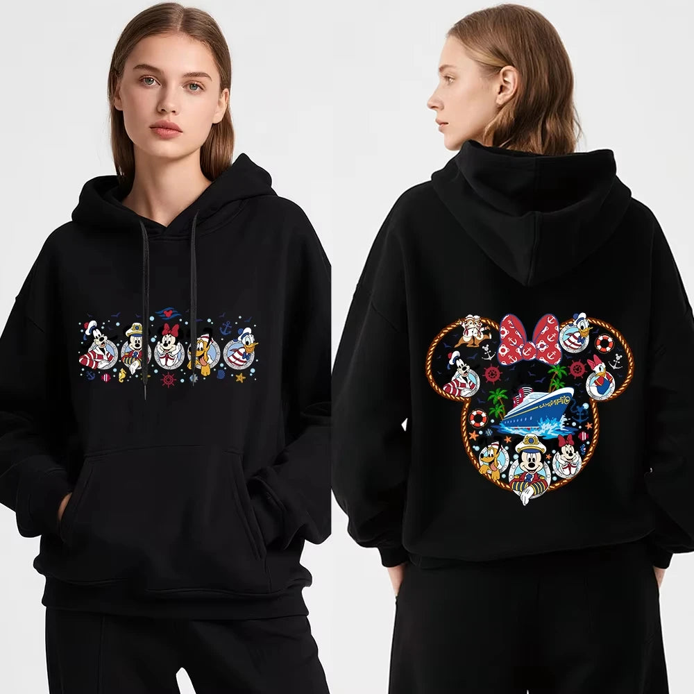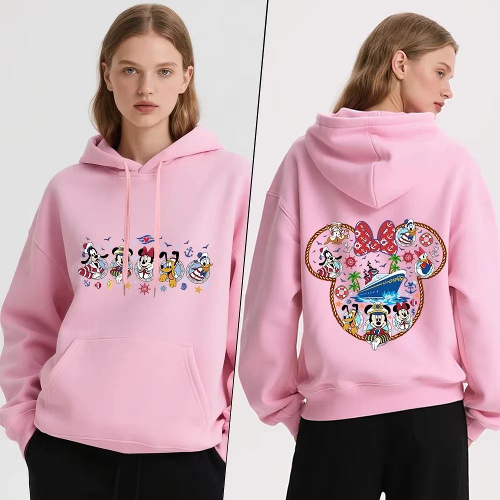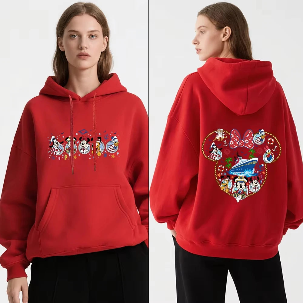 Disney Authentic Cruise Mickey and Minnie Print Fall/Winter New Womens Hoodie Travel Holiday Sweatshirt Comfortable Casual Top