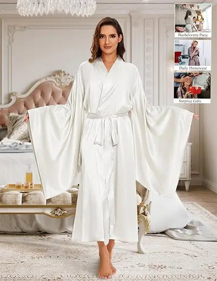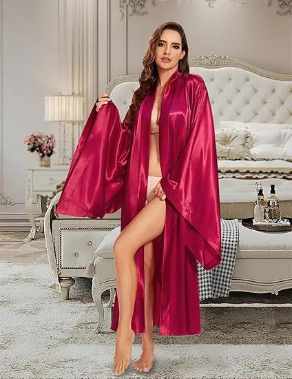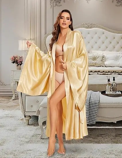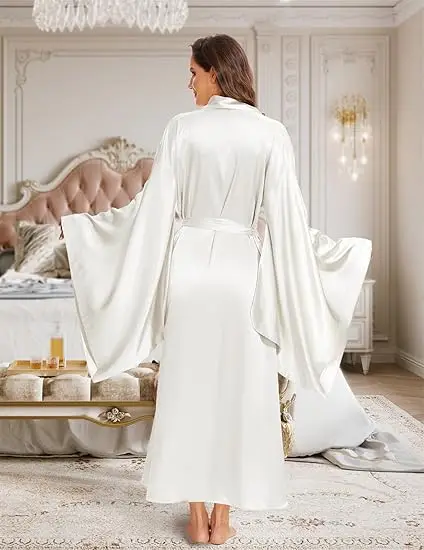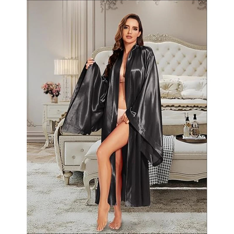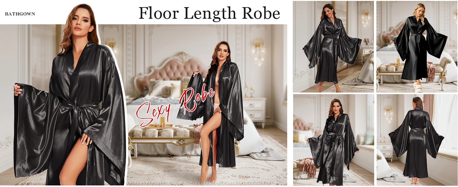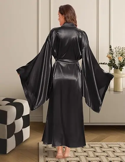 Elegant Floor Long Length Robe Silk Bridal Wedding Dressing Kimono Robe Bridal Party Bride Robe Black Kimono Robe