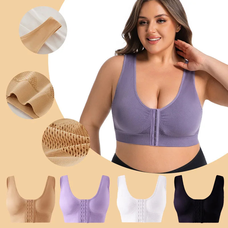 Gathered Front Closure Sports Bra Thin Yoga Shockproof Vest Women's Cross-Border plus Size No Steel Ring Bra Underwear