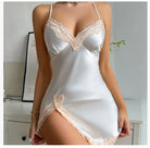 Lace Trim Leopard Nightdress V Neck Backless Side Split Slip Sleep Dress Women's Sleepwear Dresses