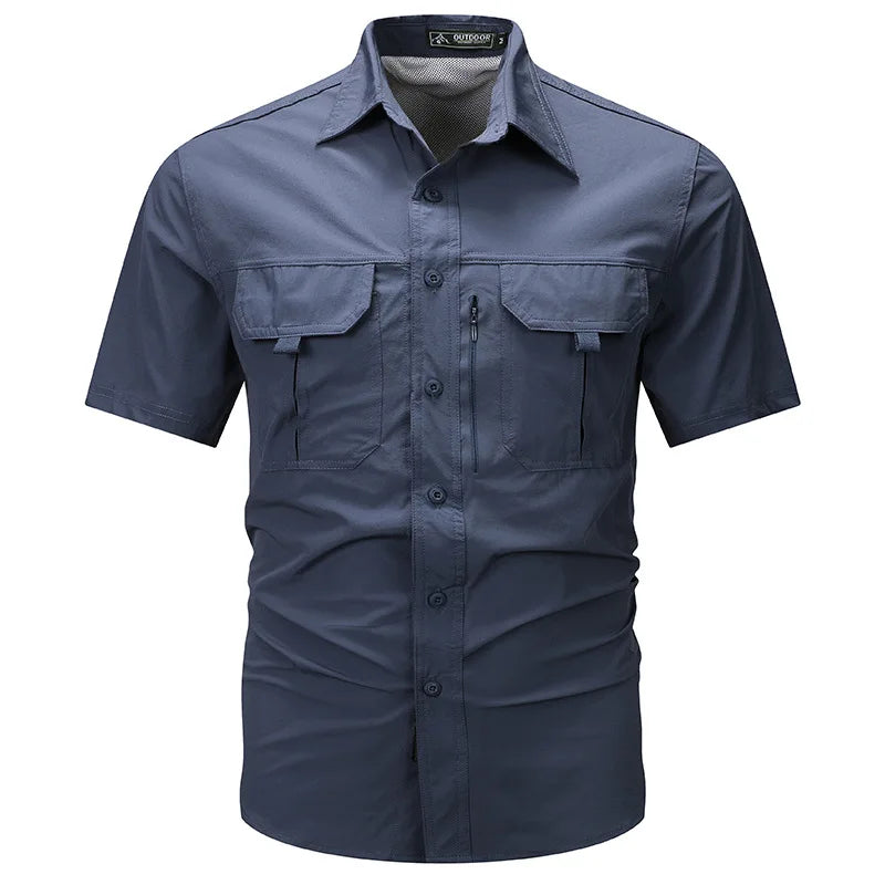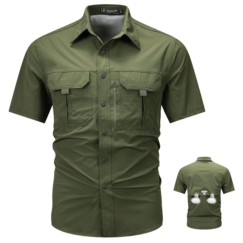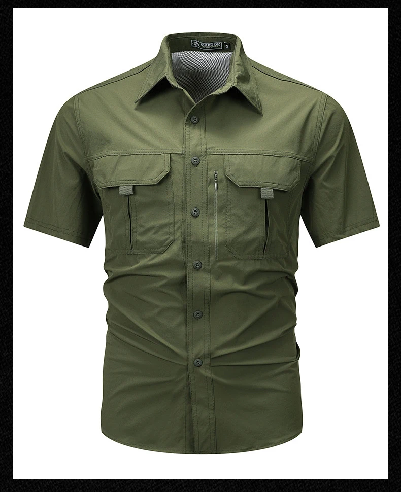 Men's short sleeved shirt, ice silk quick drying, middle-aged and young men's lapel workwear, multi pocket shirt,summer thin top