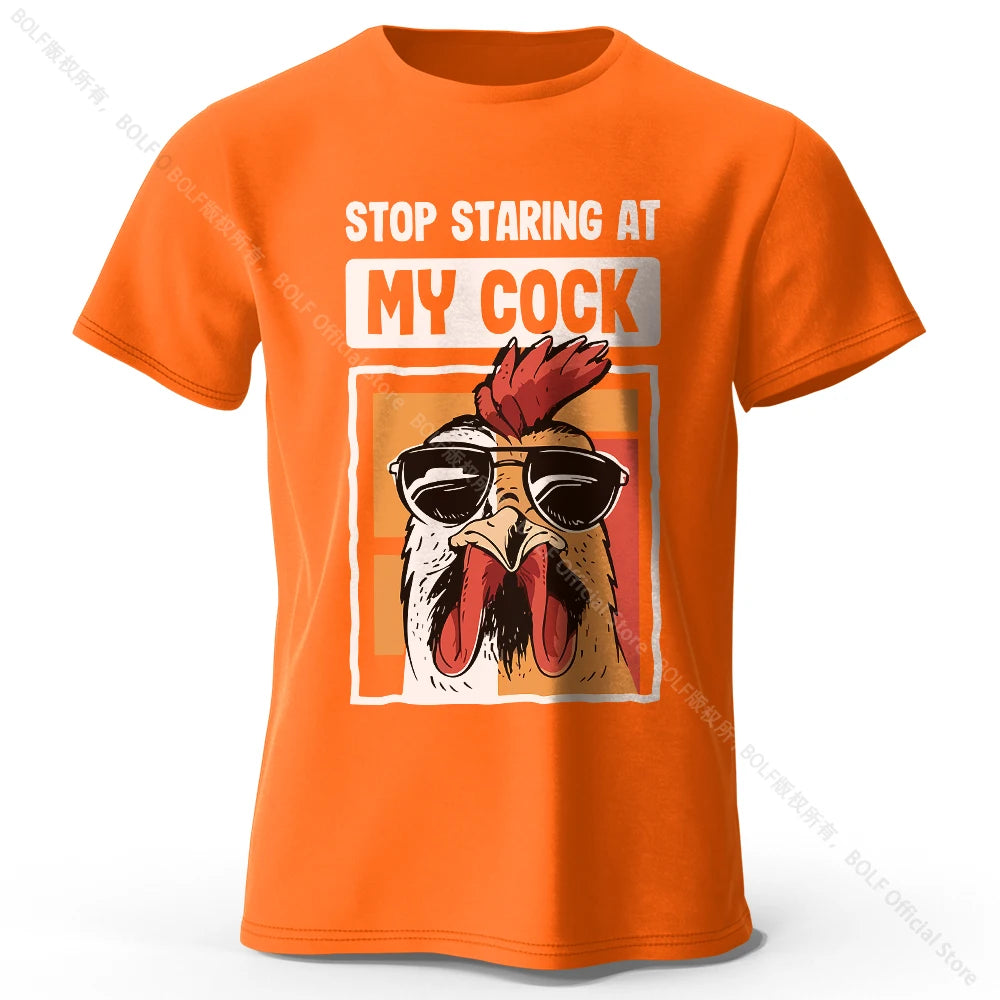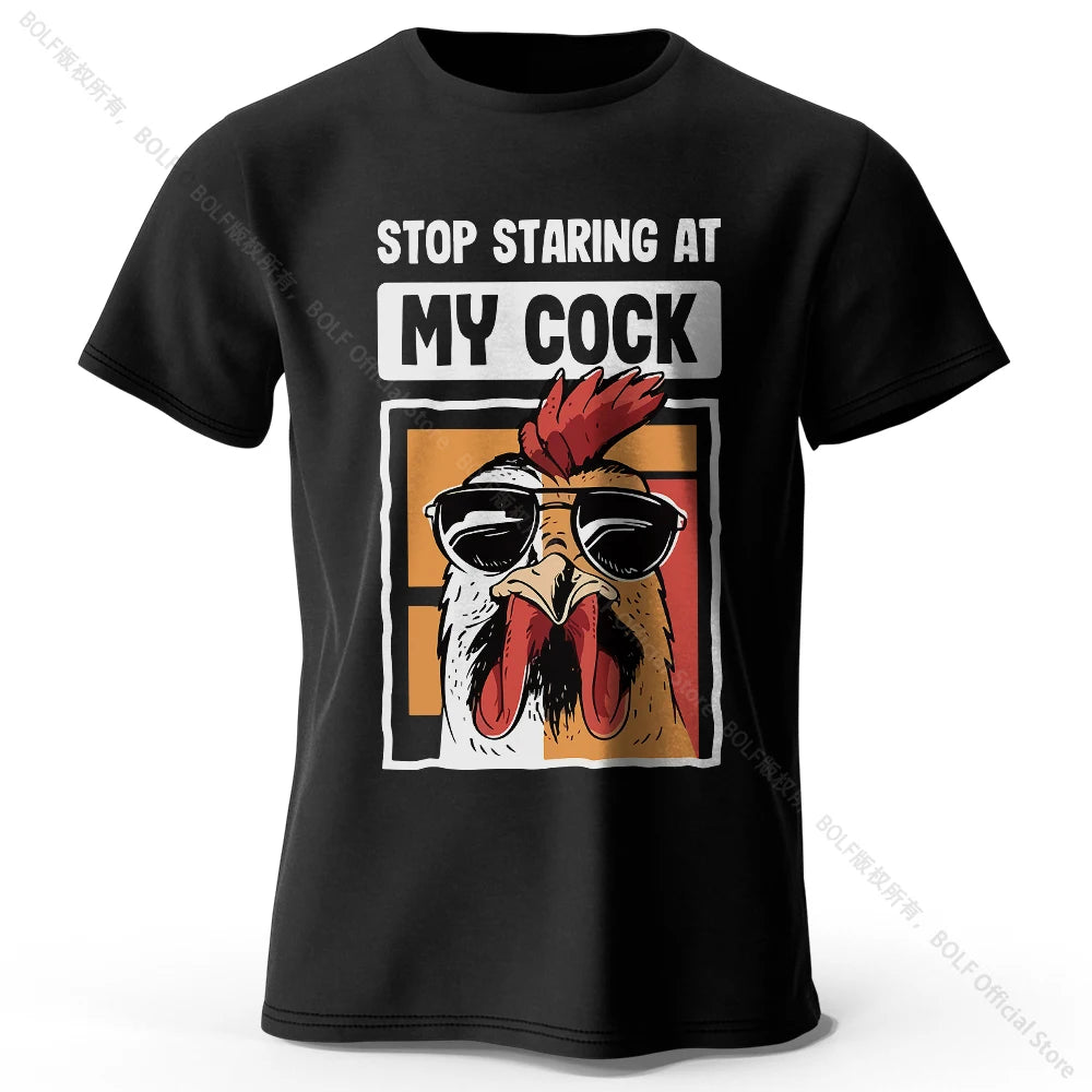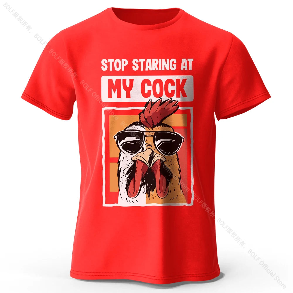Men's Stop Staring At My Cock Printed T-Shirt 100% Cotton Oversized Funny Graphic Tees for Men Women Summer Tops
