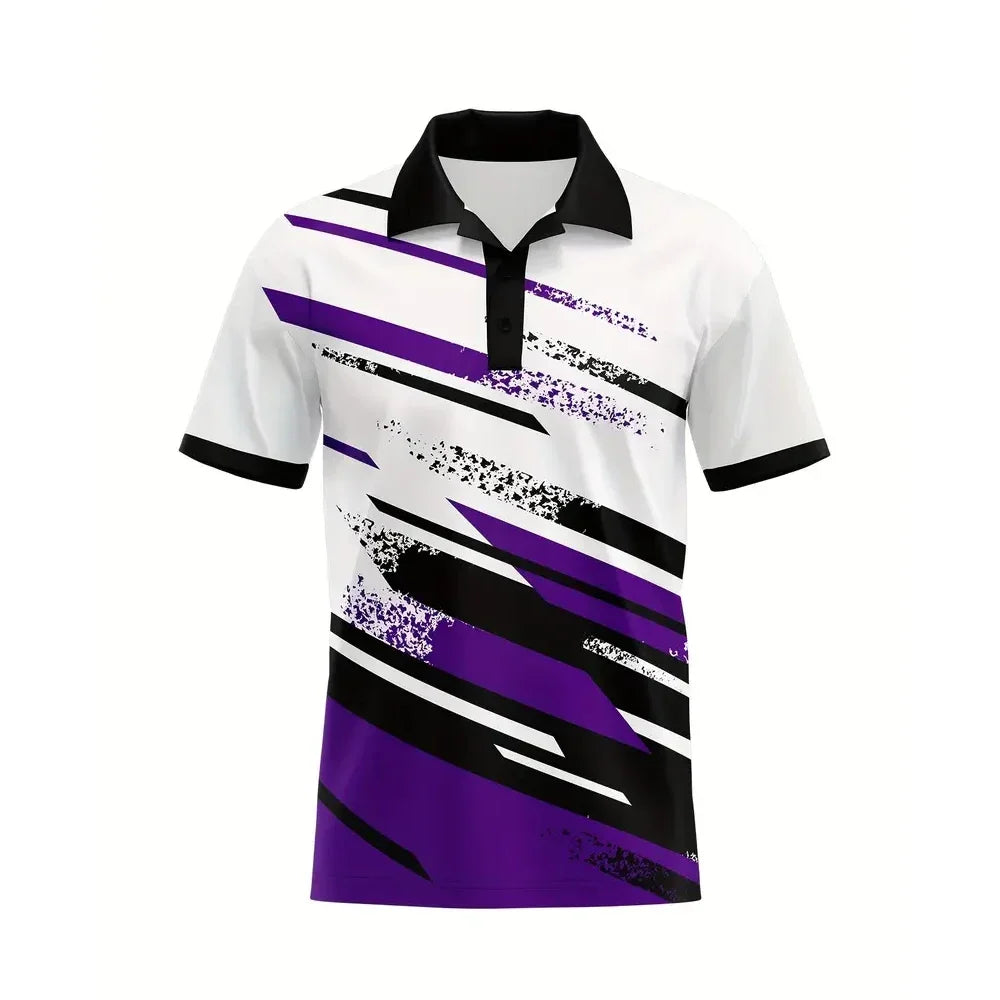 Pop Men's Summer Fashion Polo Shirt Casual Geometric Stripe Pattern Short Sleeve Formal Cut Knitted - H Style Luxury Clothes Men