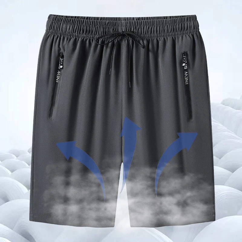 Summer outdoor shorts men's zipper pocket shorts Male knee high beach shorts drawstring design sports shorts