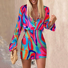 Two Piece Suit 2023 Autumn New Women Printed Long Sleeve Bag Hip Slim V-neck Sexy Fashion Elegant Casual Ladies Skirt Set MsChuh
