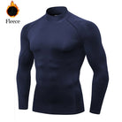 Winter Autumn Gym T Shirt Men's Long Sleeve Compression Shirt Fleece Training Top Male Muscle Workout Running Skiing Clothing