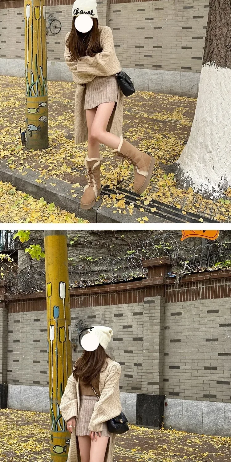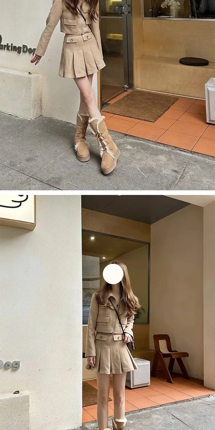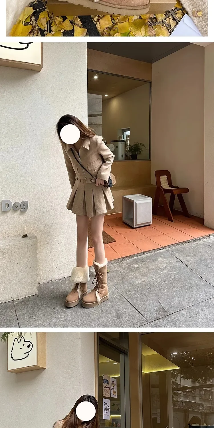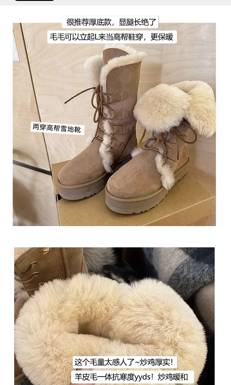 Winter Warm Plush Cotton Shoes Women Outdoor Lace Up Casual Snow Boots Anti-slip Ethnic Thick Sole Soft Long Boots 2024
