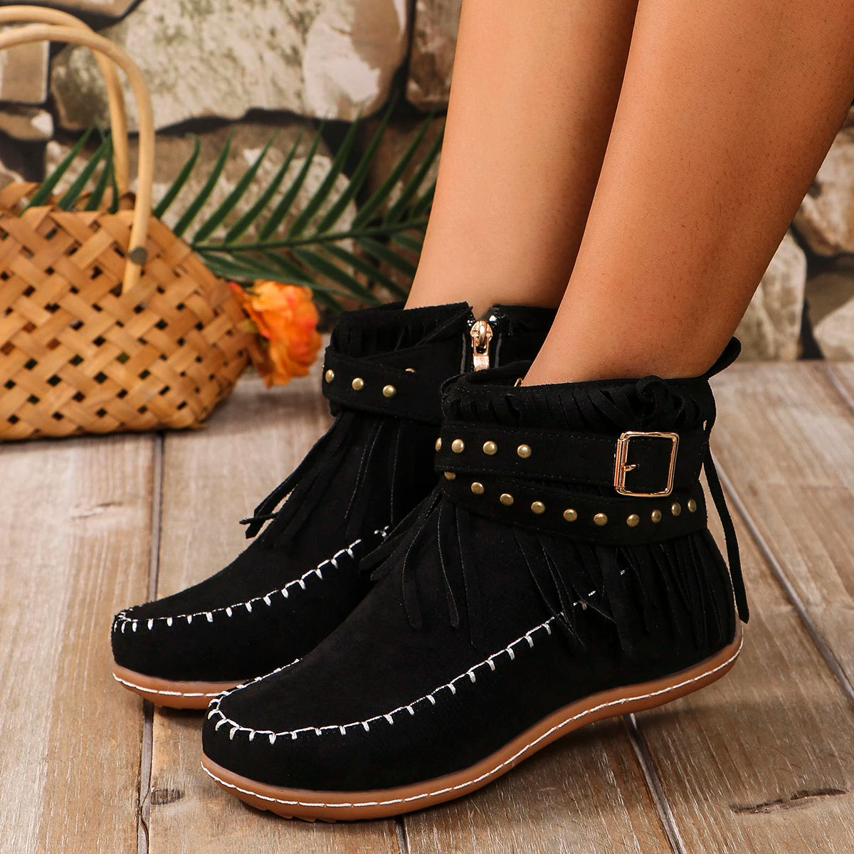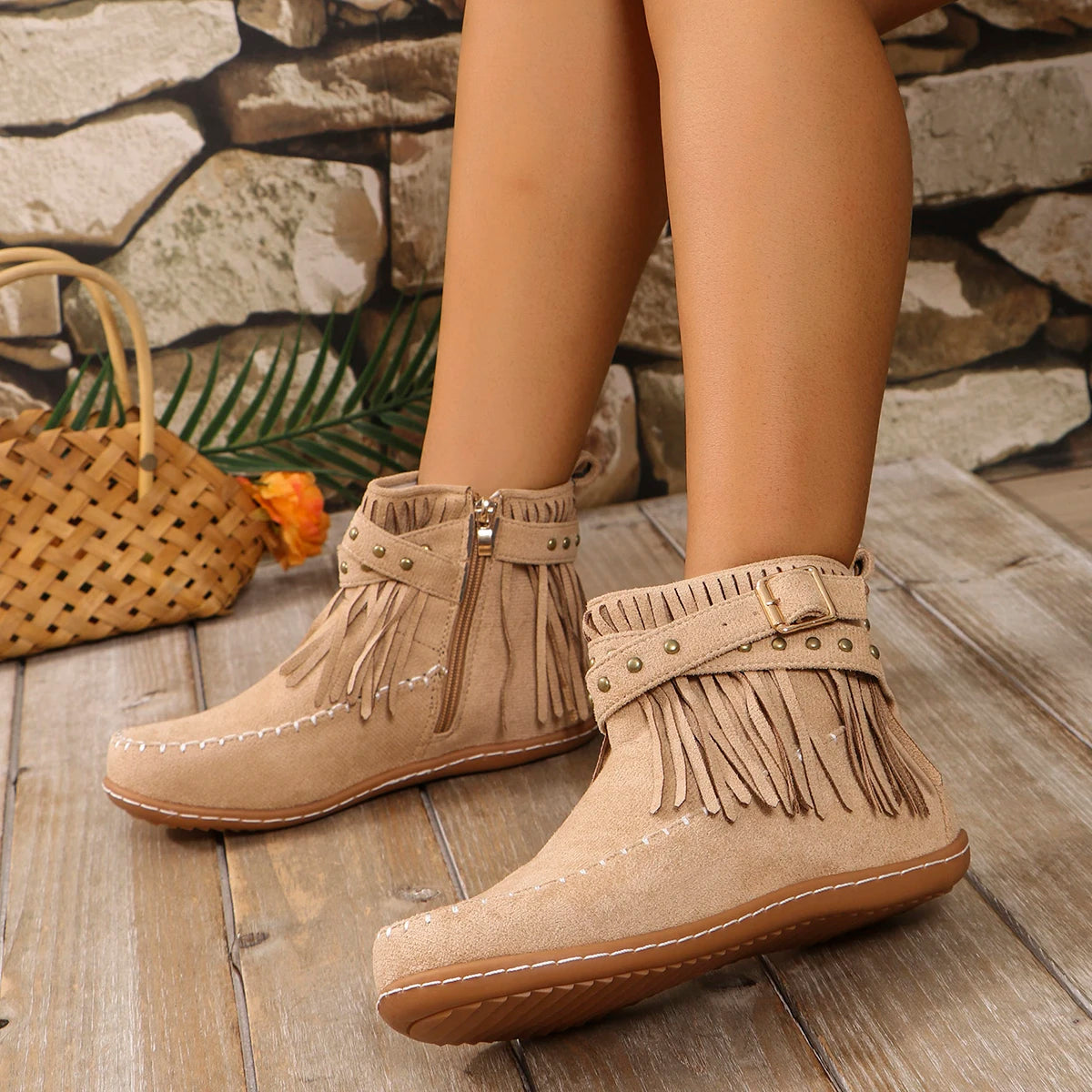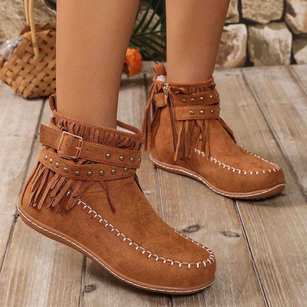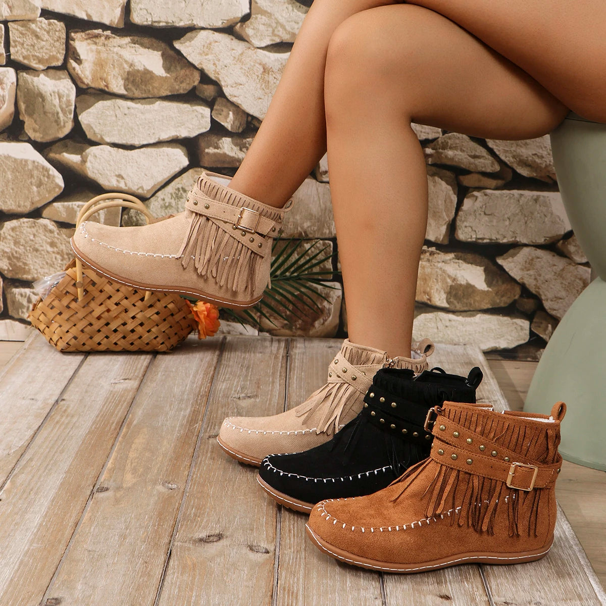 Women Boots New Vintage Suede Ankle Boots Fringe Women Shoes Winter Side Zipper Casual Round Toe Snow Boots Women Botas De Mujer