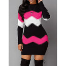 Women Elegant Patchwork Long Sleeve Warm Dress 2022 Autumn Winter Rib Knit Sweater Dress Casual Turtleneck Pullover Mini Dresses