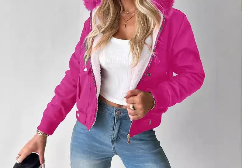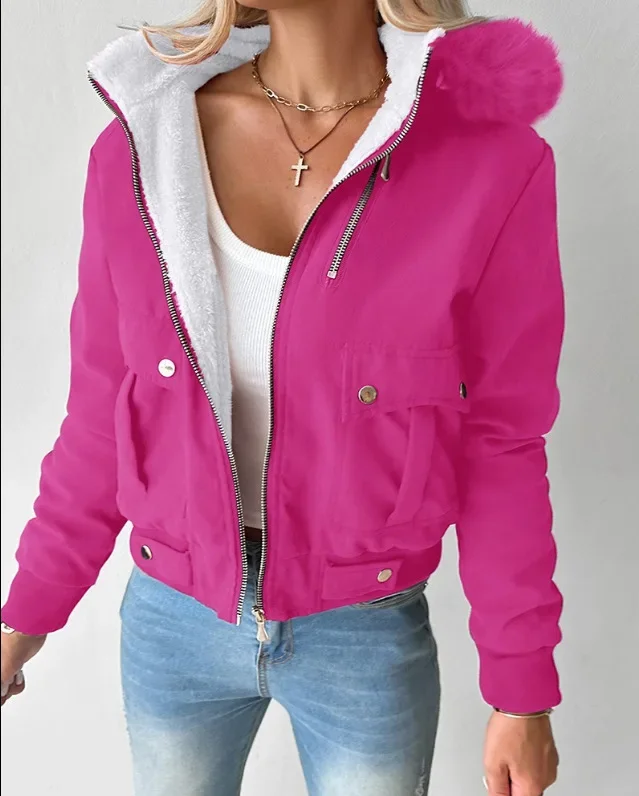women jacket Short Streetwear Fashion Versatile Casual Zipper Thickened Long Sleeves Hooded coats for Female 2024 Autumn/Winter